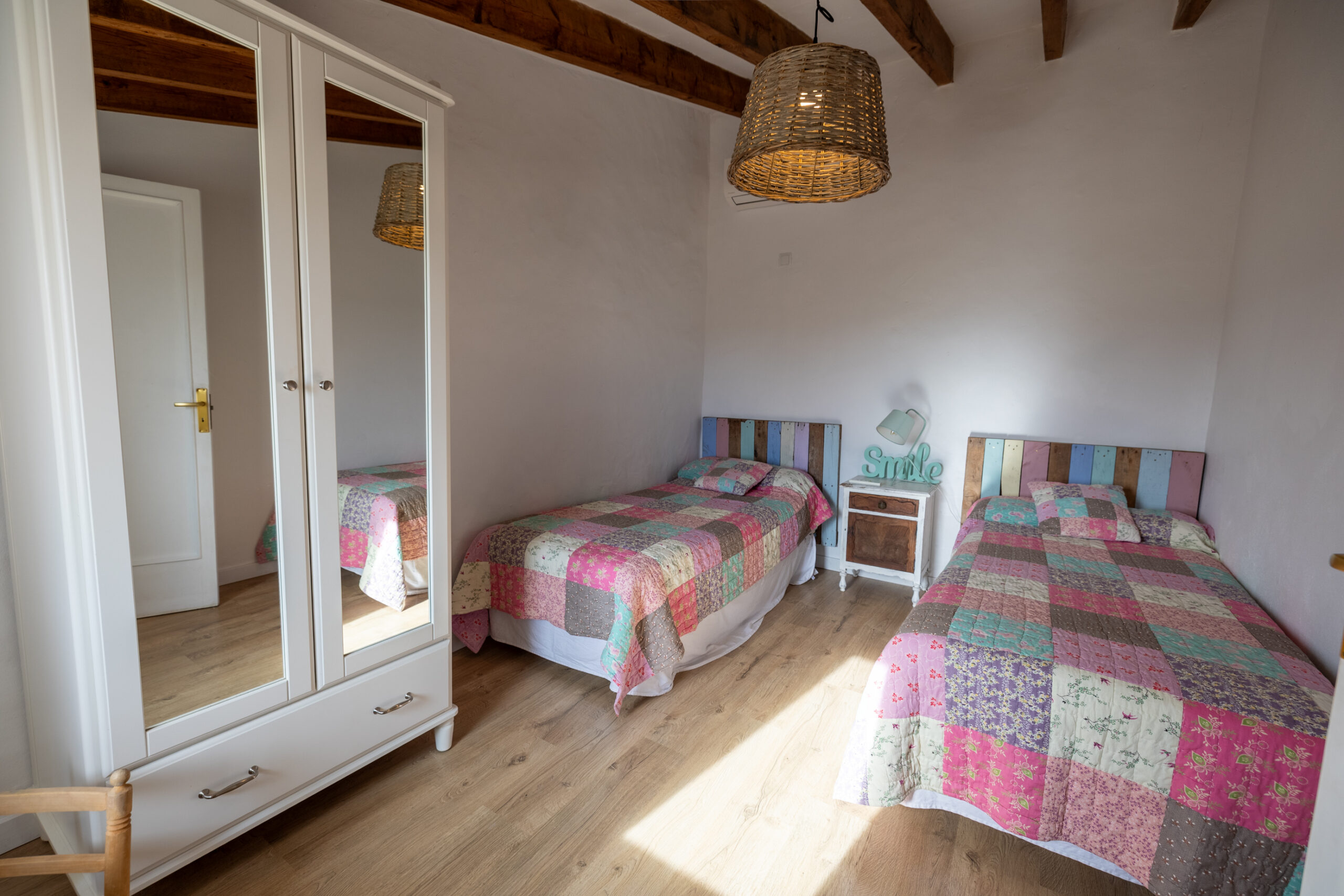 Un espacioso salón distribuidor, inundado de luz natural, conecta con dos amplios dormitorios dobles, cada uno con aire acondicionado frío/calor para garantizar el máximo confort en cualquier época del año.